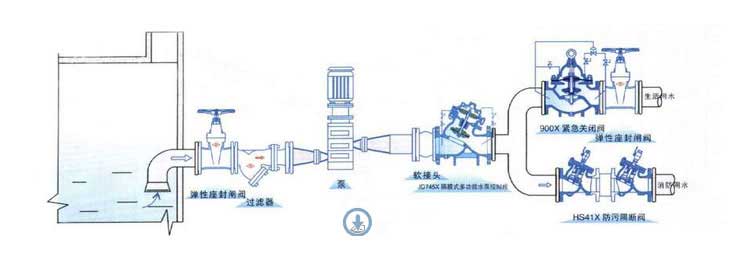 4.生活飲用水管道上串聯(lián)加壓泵時安裝于泵吸水管上。